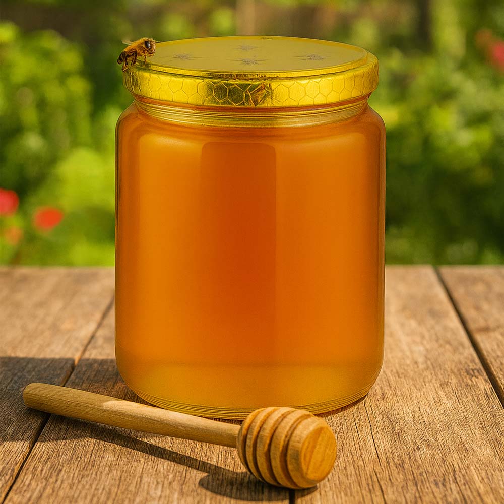 Hochwertiges 1000 g Honigglas mit dekorativem Bienenwaben-Deckel BasicSeal UNiTWIST. Das Wabenmuster verleiht dem Glas eine natürliche, authentische Optik und eignet sich ideal für Familiengläser, Premium-Honig und Direktvermarktung.