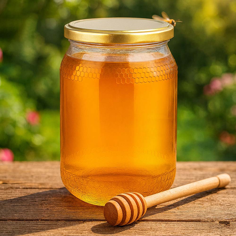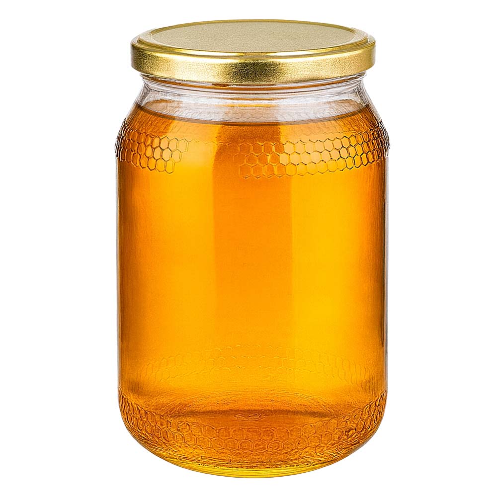 Hochwertiges 1260 g Honigglas mit elegantem goldenem BasicSeal UNiTWIST-Deckel. Dank seines großen Fassungsvermögens eignet sich dieses Glas ideal für Familienportionen, große Abfüllmengen und die Direktvermarktung. Der goldene Deckel sorgt für ein edles Erscheinungsbild im Verkaufsregal.