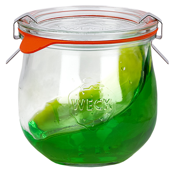 Komplettes Set bestehend aus Glasunterteil, Glasdeckel, Gummiring, 2 Klammern. WECK-Gläser werden schon seit über 100 Jahren zum Einkochen verwendet. Die Qualität von damals überzeugt auch heute noch Hobby-Köche und Profis. Die preiswerten Gläser werden heutzutage für viele Zwecke eingesetzt: Zum nachhaltigen Verpacken, zum dekorativen Aufbewahren oder zum Servieren von Desserts, Kuchen und anderen Speisen.