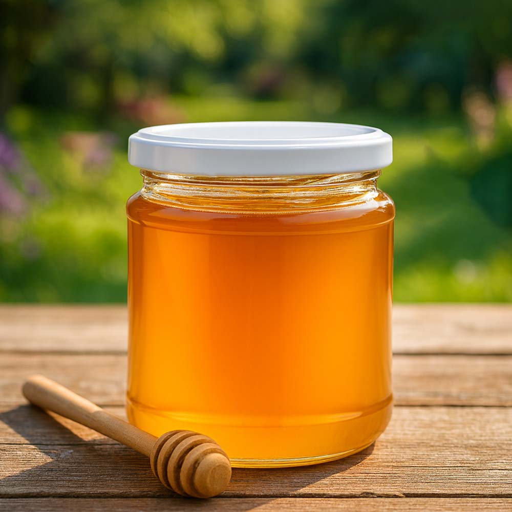 Hochwertiges 350 g Honigglas mit modernem weißem BasicSeal UNiTWIST-Deckel. Die neutrale, saubere Optik macht dieses Glas ideal für Direktvermarktung, Geschenkverpackungen und hochwertige Präsentationen im Verkaufsregal.