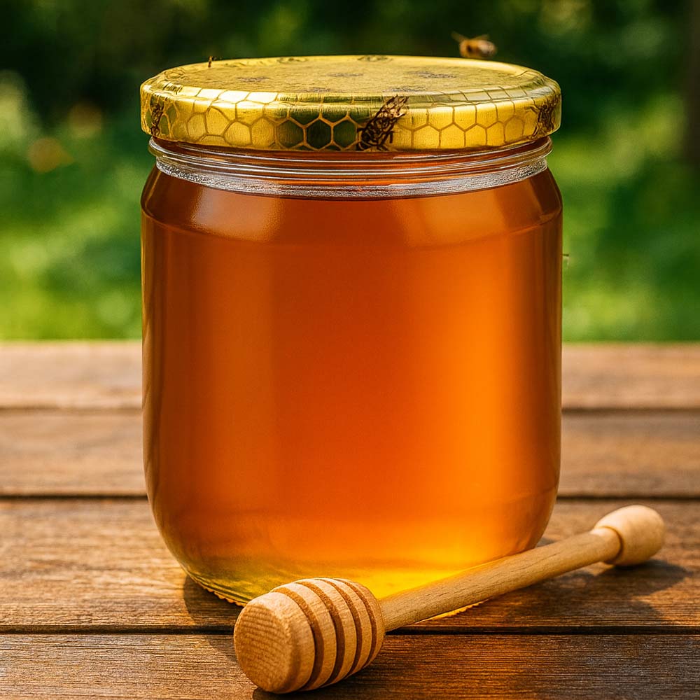 Hochwertiges 500 g Honigglas mit dekorativem Bienenwaben-Deckel BasicSeal UNiTWIST. Das Wabendekor unterstreicht die natürliche Herkunft des Honigs und macht das Glas ideal für Direktvermarktung, Geschenksets und Premium-Abfüllungen.