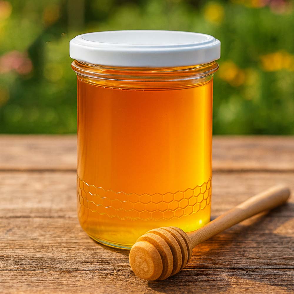 Hochwertiges 560 g Honigglas mit modernem, weißem BasicSeal UNiTWIST-Deckel. Die klare Optik wirkt besonders hochwertig und eignet sich hervorragend für Direktvermarktung, Geschenksets sowie mittlere bis größere Abfüllmengen.