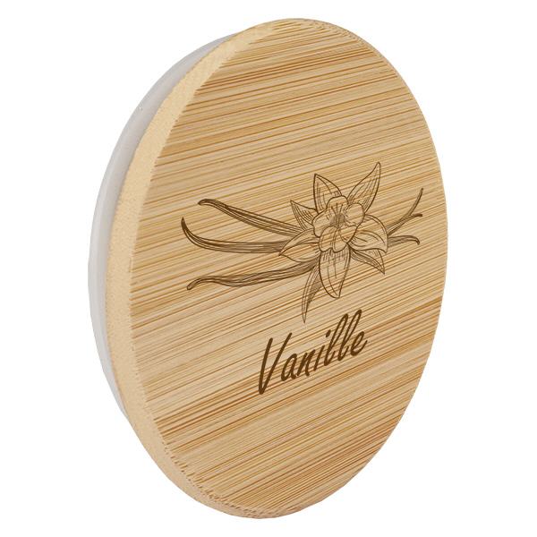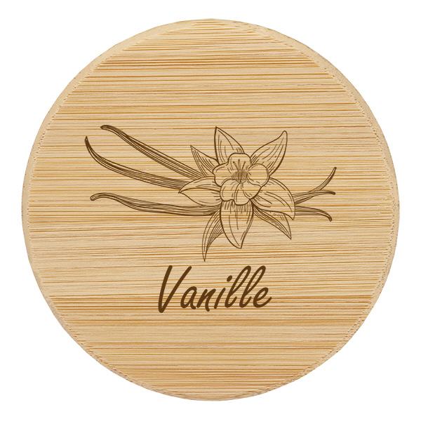 - Aufdruck: Brauner Schriftzug und Bild "Vanille"