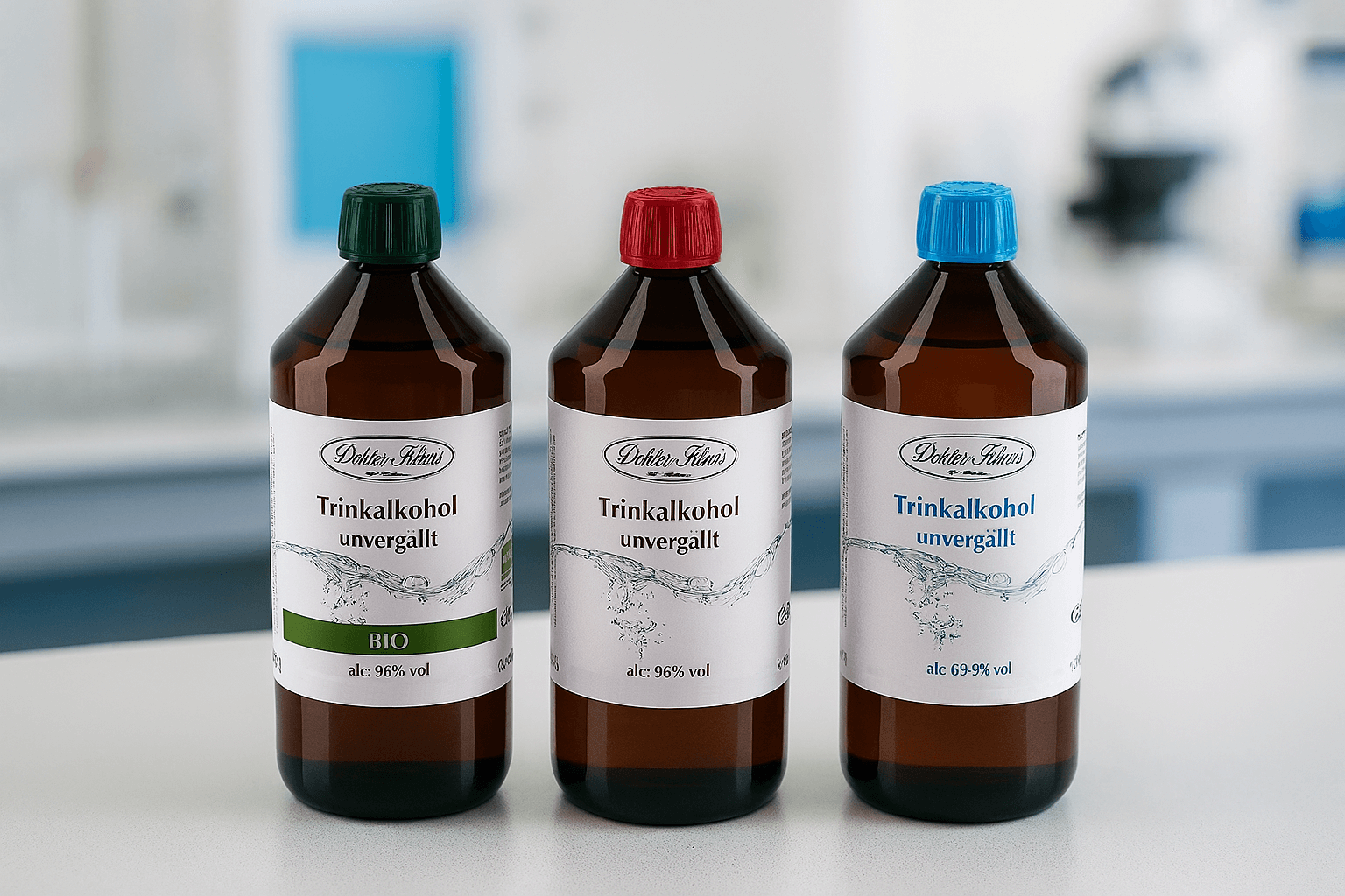 Bei Ethanol für Spirituosen werden häufig Qualitätsanforderungen gestellt, die im Labor nicht mehr messbar sind. Im Unterschied zu Destillaten aus landwirtschaftlichen Rohstoffen, die noch die sensorischen Eigenschaften der Ausgangsrohstoffe aufweisen, muss Ethanol für Spirituosen geschmacks- und geruchsneutral sein. Um diesen Erfordernissen Rechnung zu tragen, werden unsere Alkohole vom Hersteller regelmäßig sensorisch geprüft. In der Regel hat „Neutral-Alkohol“ einen Alkoholgehalt von 96% Vol. bis 96,4% Vol.